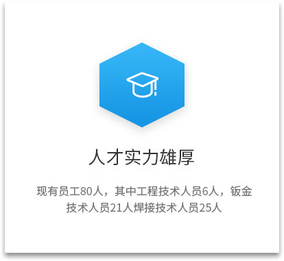 公司位于兗州經(jīng)濟(jì)開(kāi)發(fā)區(qū),擁有8000平方米,現(xiàn)有員工80人,其中工程技術(shù)人員6人,鈑金技術(shù)人員21人焊接技術(shù)人員25人。